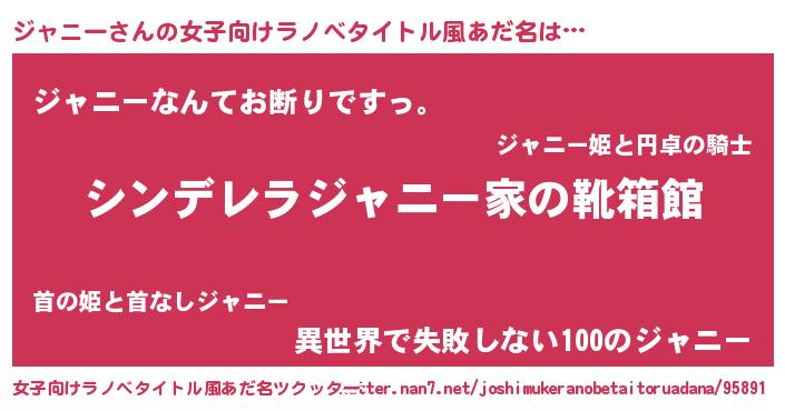 | 意味不明あだ名 | 『自称ジャニー』『永久保存ジャニー』 |