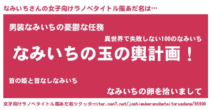 | 男性向けラノベタイトル風あだ名 | 『転生したらなみいちだった件』 |