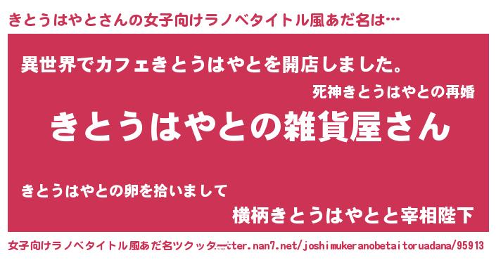 | ファンタジー風あだ名 | 『エターナルキトウハヤトー』 |