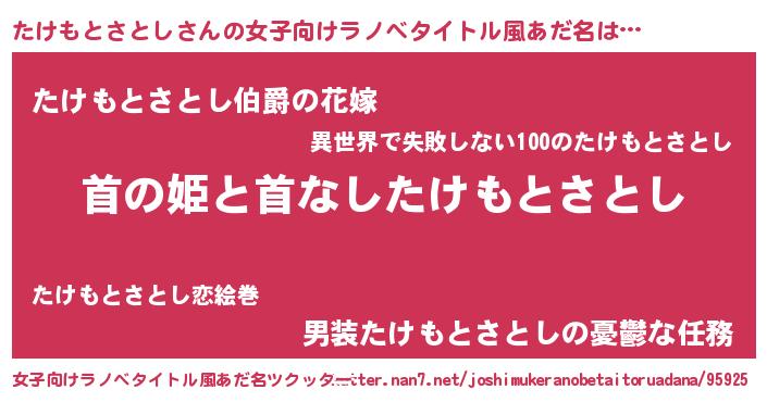 | 意味不明あだ名 | 『たけもとさとしフォーエバー』 |