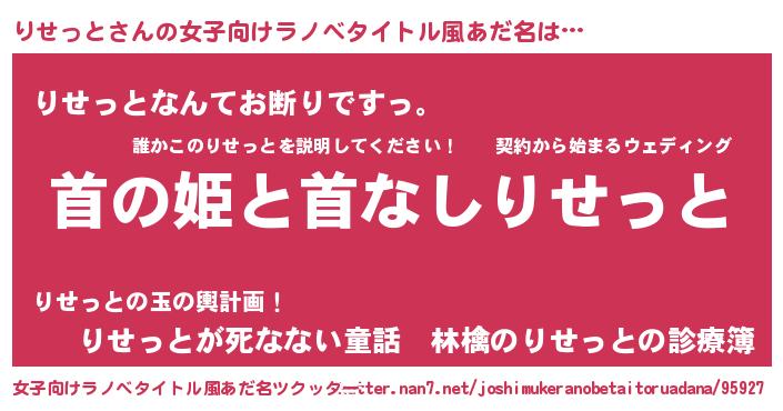 | 男性向けラノベタイトル風あだ名 | 『はたらくりせっとさま!』 |