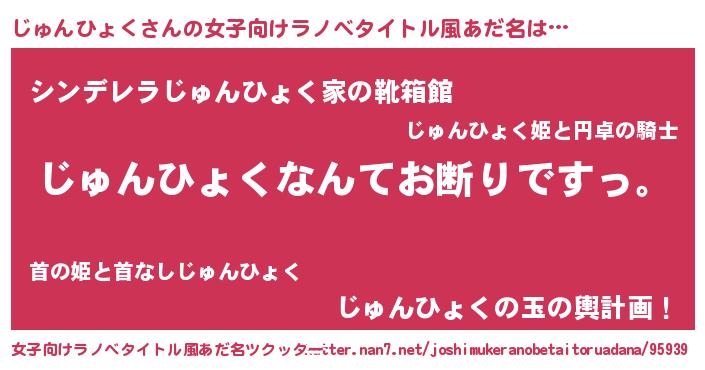 | 意味不明あだ名 | 『自称じゅんひょく』 |