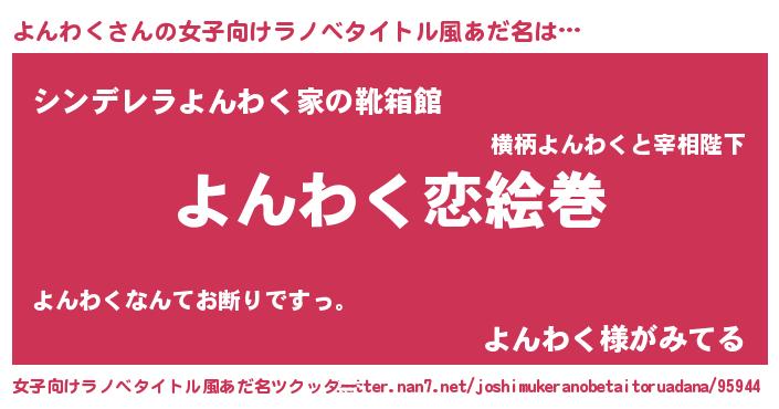 | ヘコむあだ名 | 『よんお』『よんにゅー』『酢こんぶ』 |