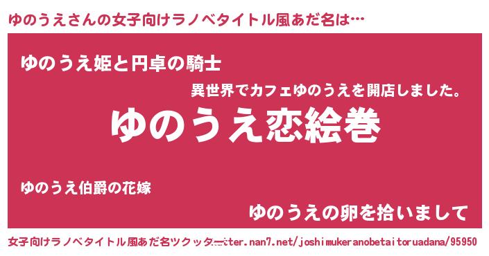 | ヘコむあだ名 | 『ゆのにー』『ゆのっ子』『なまこ酢』 |