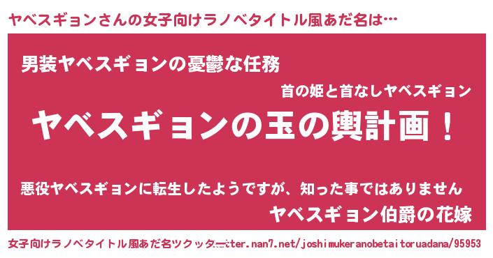 | 男性向けラノベタイトル風あだ名 | 『転生したらヤベスギョンだった件』 |