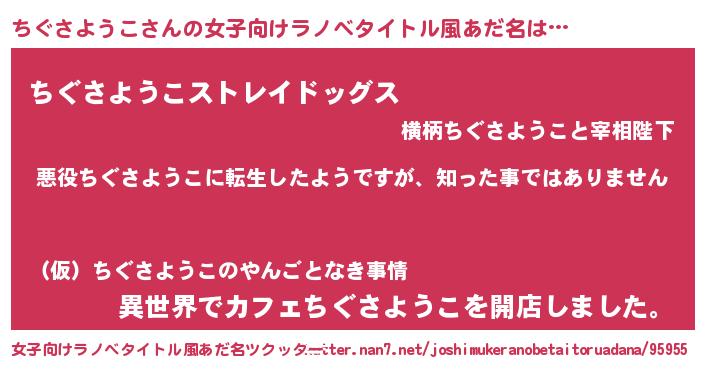 | 男性向けラノベタイトル風あだ名 | 『この素晴らしい世界にちぐさようこを!』 |