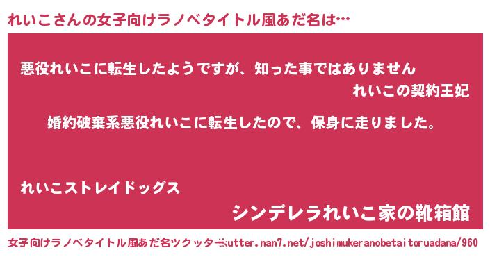 | 意味不明あだ名 | 『しいたけ科れいこ属』『永久保存れいこ』 |