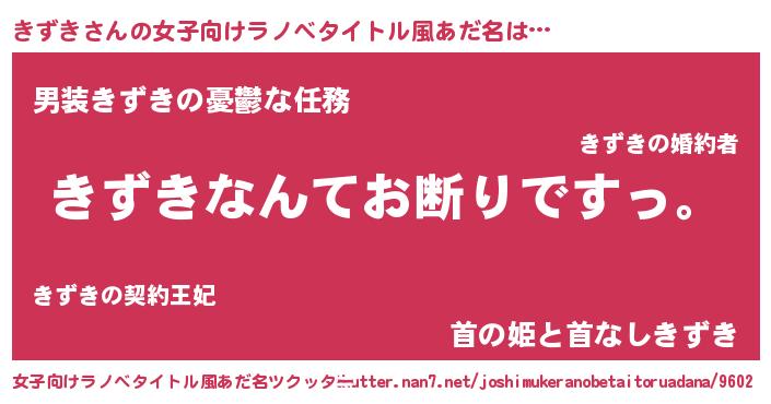 | ヒーロー風カッコイイあだ名 | 『超時空戦士キズキ』『ネオキズキ』 |
