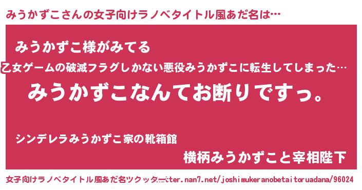 | ヒーロー風カッコイイあだ名 | 『超時空戦士ミウカズコ』『天弓騎士ミウ』 |