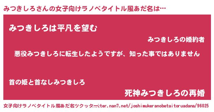 | 男性向けラノベタイトル風あだ名 | 『この素晴らしい世界にみつきしろを!』 |