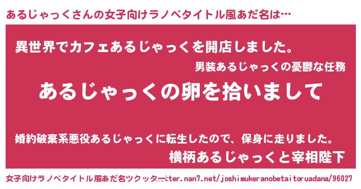 | 男性向けラノベタイトル風あだ名 | 『あるじゃっくの嫁は女の子じゃないと思った?』 |