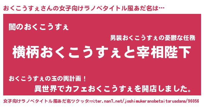 | 男性向けラノベタイトル風あだ名 | 『おくこうすぇに滅ぼされるだけの簡単なお仕事です』 |