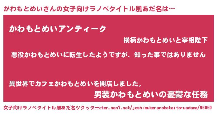 | 胡散臭い通販商品みたいなあだ名 | 『あなたにだけ特別に提供する限定10本のレアな日本酒…その名も「かわもとめい」』 |