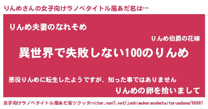 | 胡散臭い通販商品みたいなあだ名 | 『絶対に幸福をもたらす健康食品…その名も「りんめ」』 |