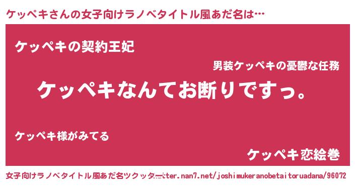 | ヘコむあだ名 | 『ケッペキ(遠い目)』『ケッお』 |