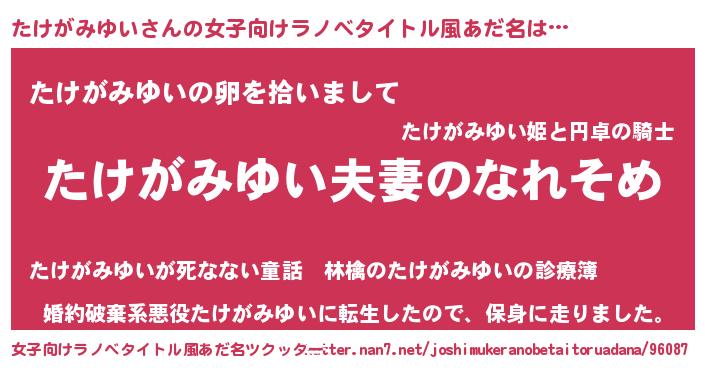 | 男性向けラノベタイトル風あだ名 | 『おまえをオタクにしてやるから、俺をたけがみゆいにしてくれ! 』 |