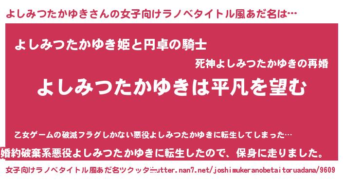 | 欧米人風あだ名 | 『ウサインよしみつたかゆき』 |