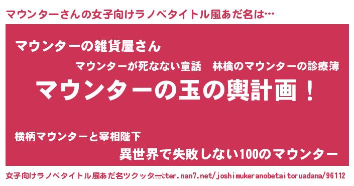 | 男性向けラノベタイトル風あだ名 | 『転生したらマウンターだった件』 |