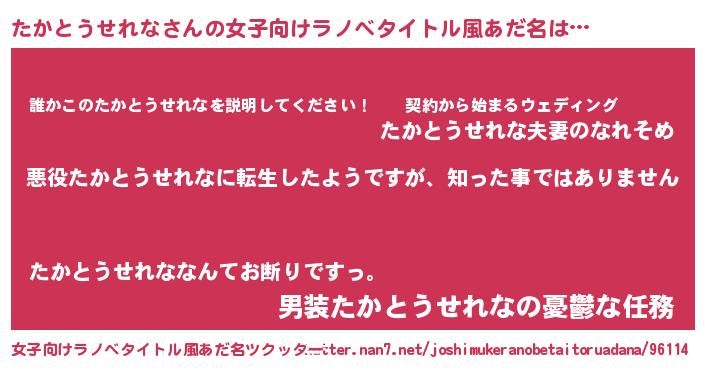 | 恥ずかしいあだ名 | 『プリティーたかとうせれな』『たかちん』 |