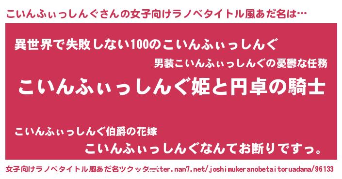 こいんふぃっしんぐさんの女子向けラノベタイトル風あだ名