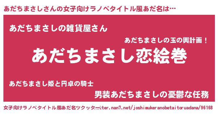 | 男性向けラノベタイトル風あだ名 | 『ノーゲーム・ノーアダチマサシ』 |
