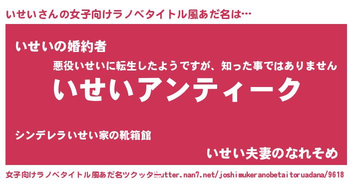 | 男性向けラノベタイトル風あだ名 | 『魔法科高校のいせい』『緋弾のイセイ』 |