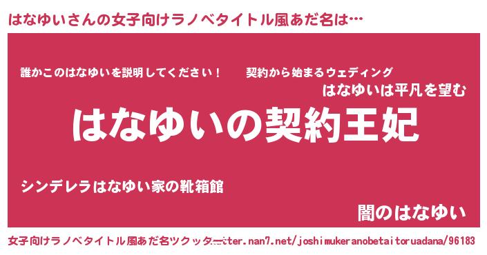 | 意味不明あだ名 | 『永久保存はなゆい』『ペロリンはなゆい』 |