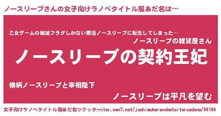 | 男性向けラノベタイトル風あだ名 | 『ノースリーブという概念が存在しない退屈な世界 』 |