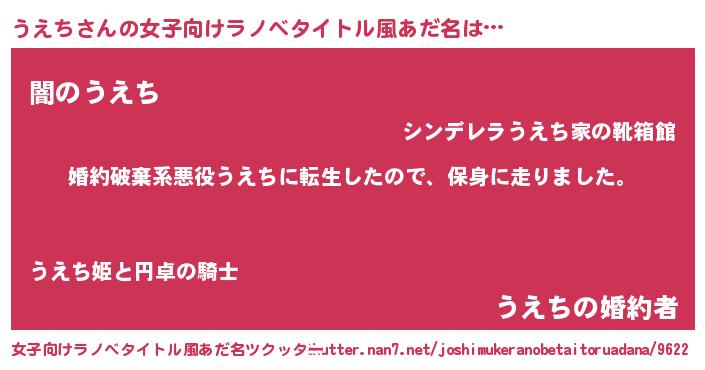 | 男性向けラノベタイトル風あだ名 | 『ウエチスレイヤー』 |