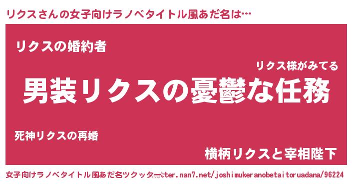 | 男性向けラノベタイトル風あだ名 | 『うちのリクスが世界を掌握している!』 |