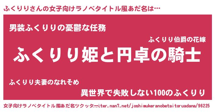 | 男性向けラノベタイトル風あだ名 | 『フクリリアートオンライン』 |