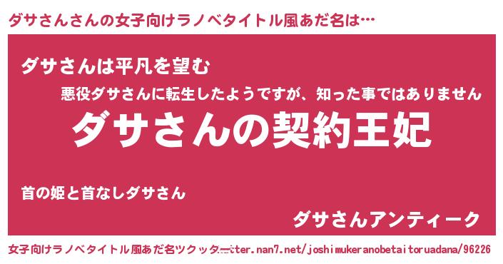 | 意味不明あだ名 | 『永久保存ダサさん』『自称ダサさん』 |
