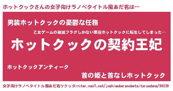 | 胡散臭い通販商品みたいなあだ名 | 『来世でも幸せになれる水素水…その名も「ホットクック」』 |