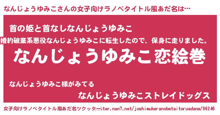なんじょうゆみこさんの女子向けラノベタイトル風あだ名