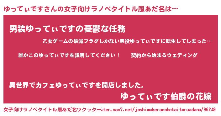 | 男性向けラノベタイトル風あだ名 | 『ユッティデスアートオンライン』 |