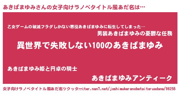 | 意味不明あだ名 | 『永久保存あきばまゆみ』 |