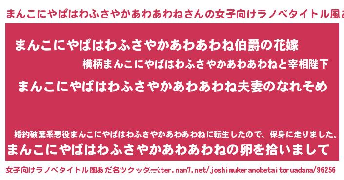 | 欧米人風あだ名 | 『ダニエルまんこにやばはわふさやかあわあわね』 |