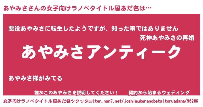 | ヒーロー風カッコイイあだ名 | 『サイバー戦士アヤミサ』『仮面アヤダー』 |