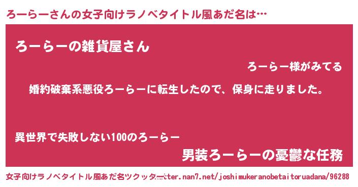 | 男性向けラノベタイトル風あだ名 | 『ローラースレイヤー』 |