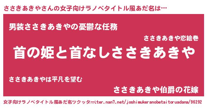 | 意味不明あだ名 | 『ささきあきやフォーエバー』 |