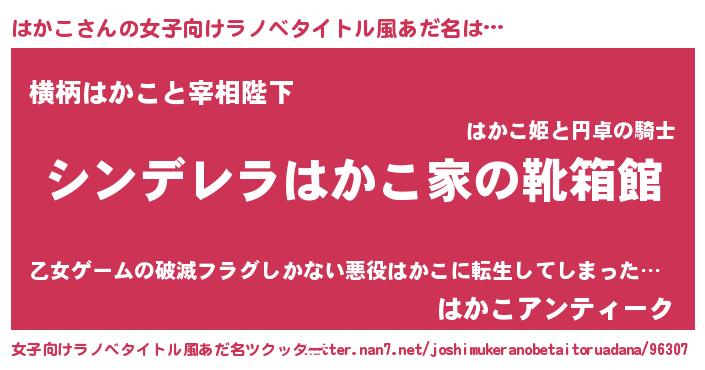 | 男性向けラノベタイトル風あだ名 | 『冴えないはかこの育てかた』 |