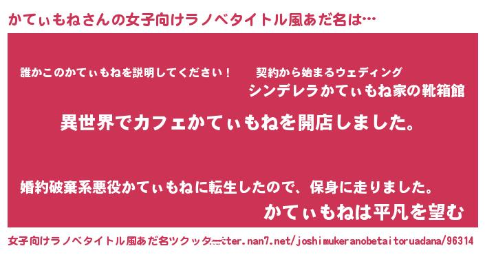 | 胡散臭い通販商品みたいなあだ名 | 『前代未聞の水素水…その名も「かてぃもね」』 |