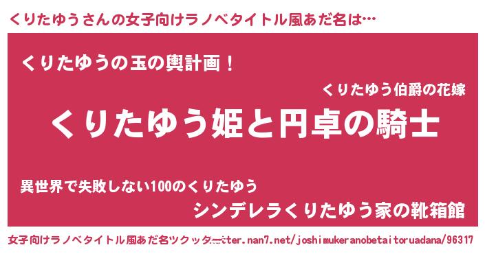 | 男性向けラノベタイトル風あだ名 | 『クリタユウアートオンライン』 |