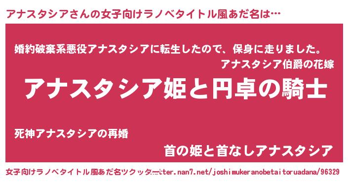 | ファンタジー風あだ名 | 『アナフェル』『ユリアナヴァット』 |