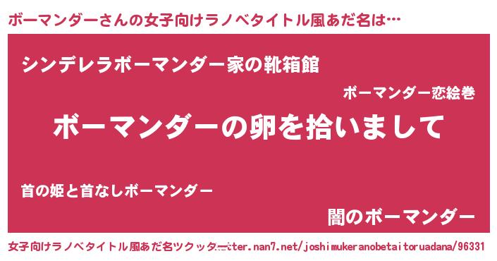 | ヘコむあだ名 | 『ボーぷりん』『ボーマンダー(笑)』 |