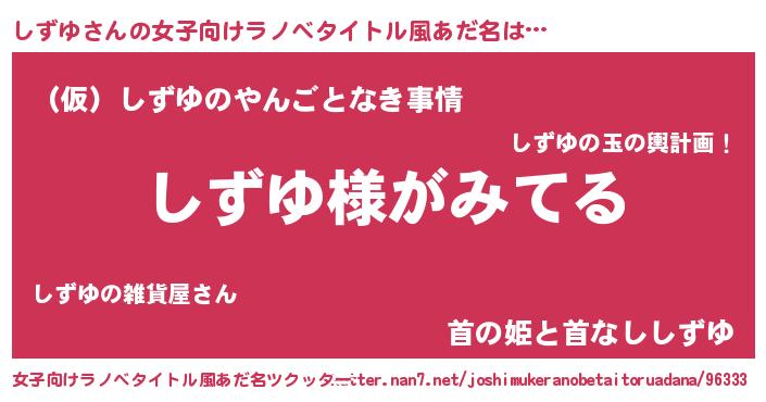 | 男性向けラノベタイトル風あだ名 | 『しずゆの嫁は女の子じゃないと思った?』 |
