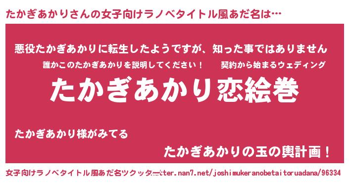 | 肩書あだ名 | 『たかぎあかり助教授』『たかぎあかりCEO』 |