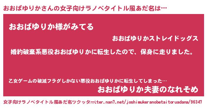 | ヘコむあだ名 | 『おおお』『おおばゆりか(震え声)』 |