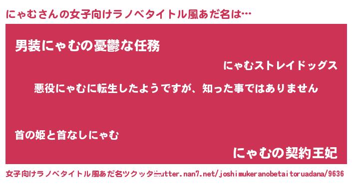 | 男性向けラノベタイトル風あだ名 | 『この素晴らしい世界ににゃむを!』 |