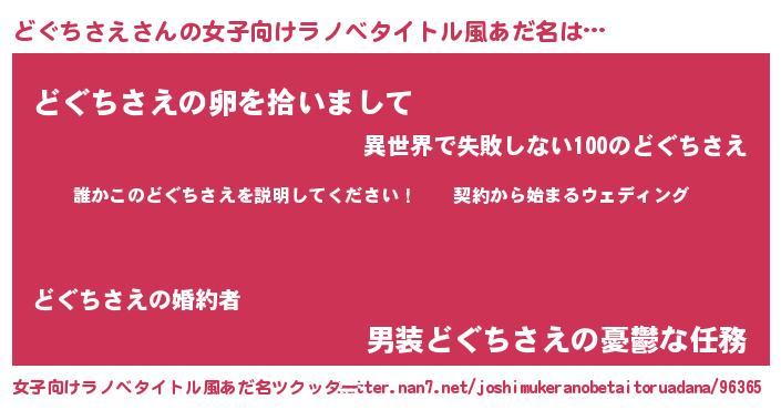| 胡散臭い通販商品みたいなあだ名 | 『億万長者になれる水晶球…その名も「どぐちさえ」』 |